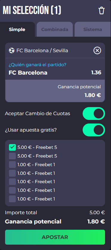 Apuestas Apuestas en Vivo Cash-out Apuestas gratis Tipos de apuestas Reglas